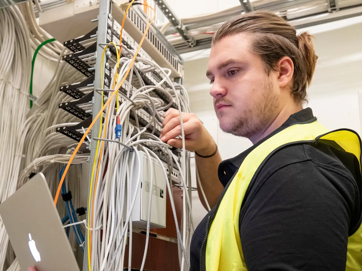 Mattias började på Gullikssons redan som lärling och har blivit kvar sedan dess. Ända sedan han utbildade sig till elektriker har han velat arbeta som serviceelektriker. Han tycker att Gullikssons med sina 80 anställda är ett precis lagom stort företag.
